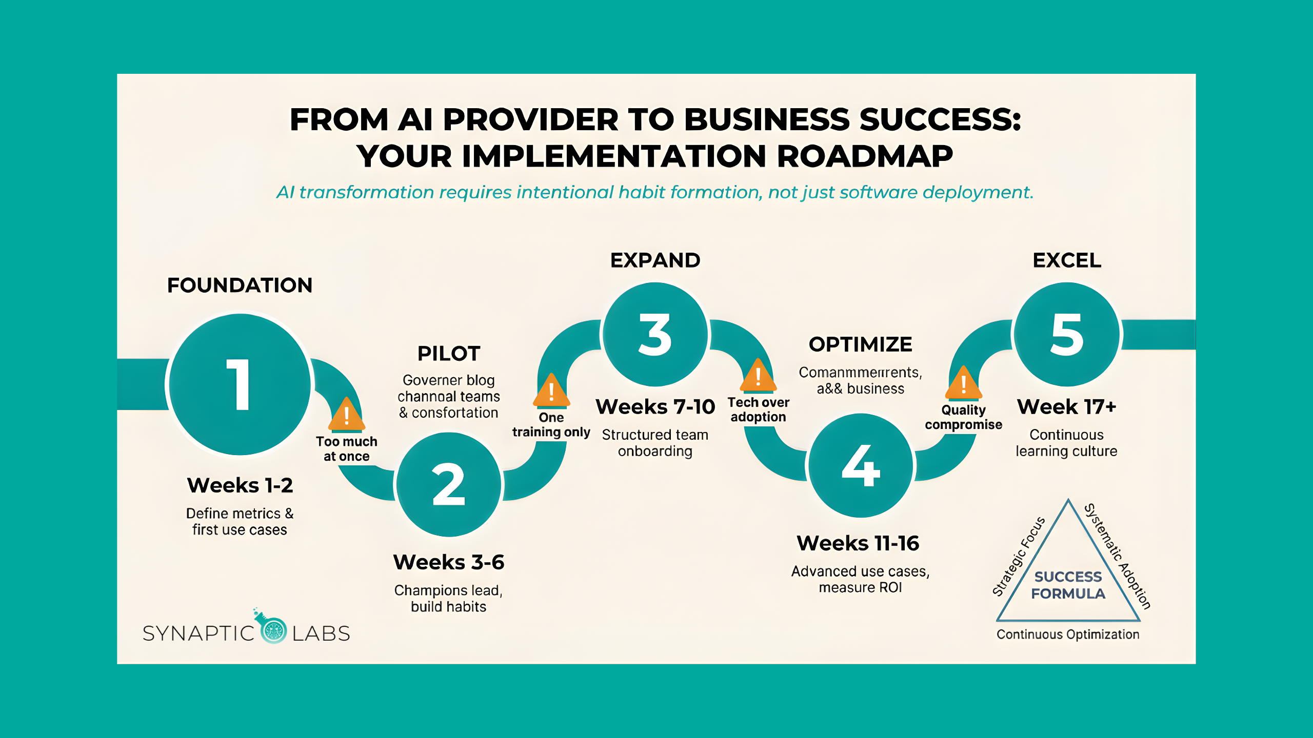 Ready to turn your AI provider decision into lasting business advantage? Follow this roadmap systematically, and you'll join the small percentage of businesses that successfully transform their operations with AI.
